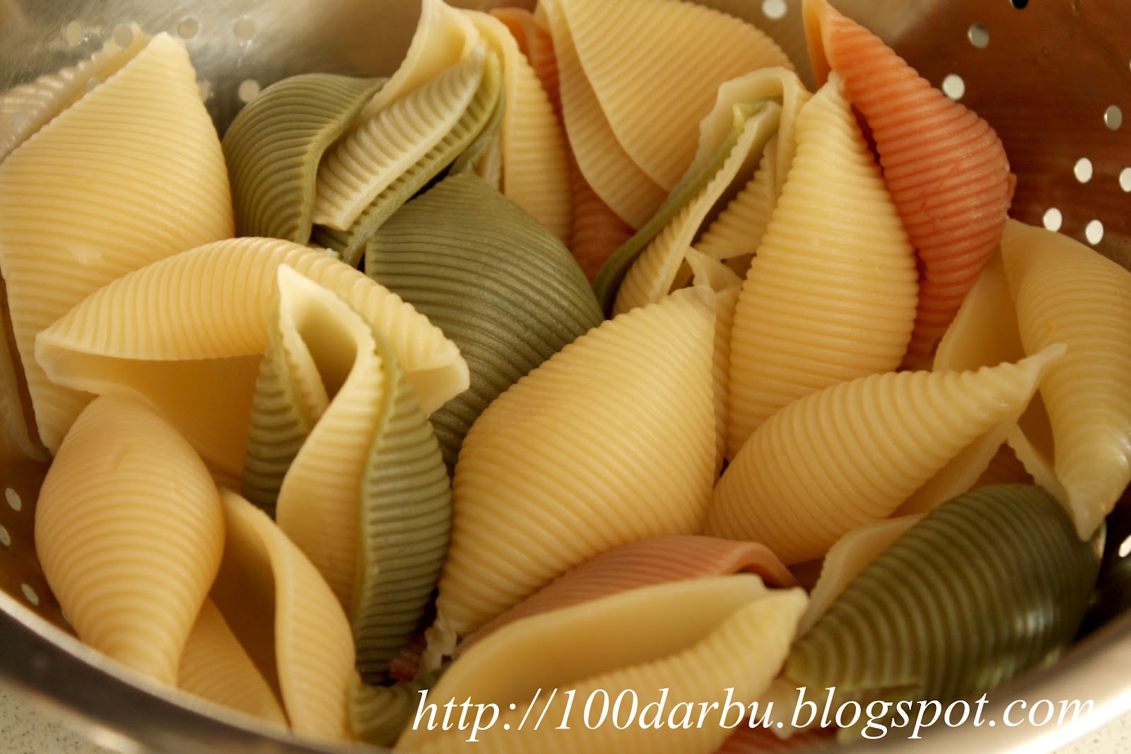 1. Naudojau tokius makaronus. 4porcijoms reikia apie 40 kriauklių.